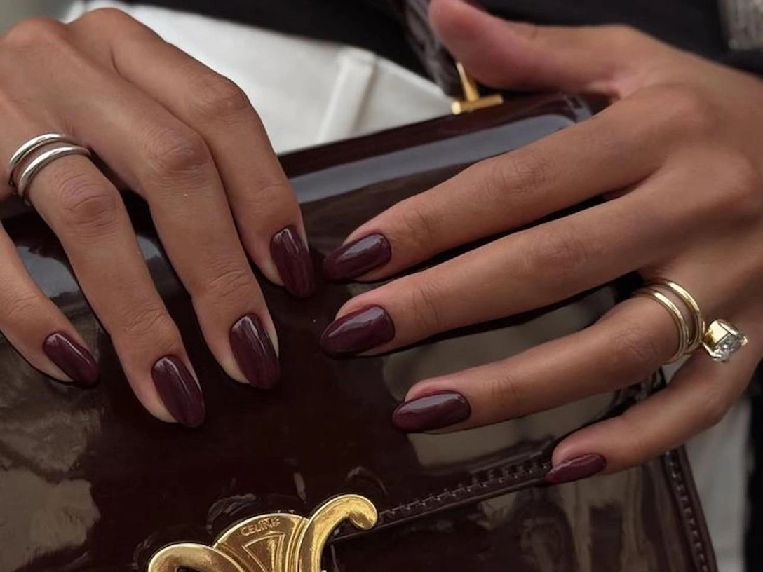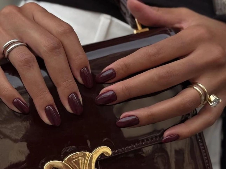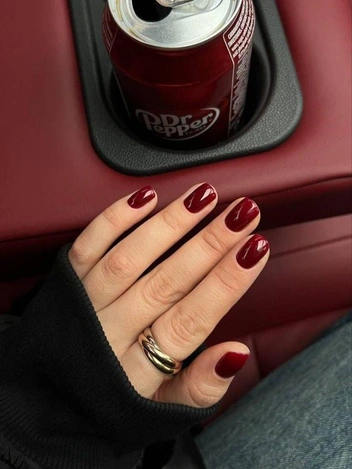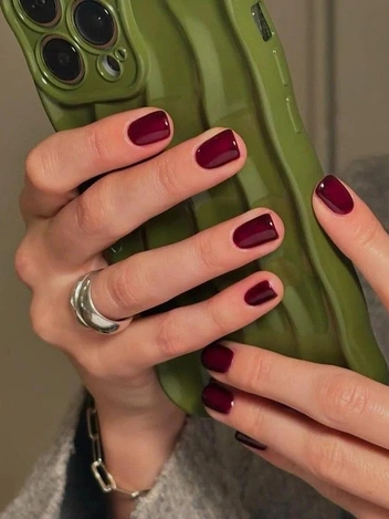 Бордовый на коротких ногтях выглядит уравновешенно и чисто. Оттенок остается насыщенным, но на небольшой длине не кажется тяжелым. Он ложится ровным слоем, подчеркивая форму без резких переходов и визуального давления (читайте также: Упражнения для спины и осанки, чтобы убрать выпирающий живот).