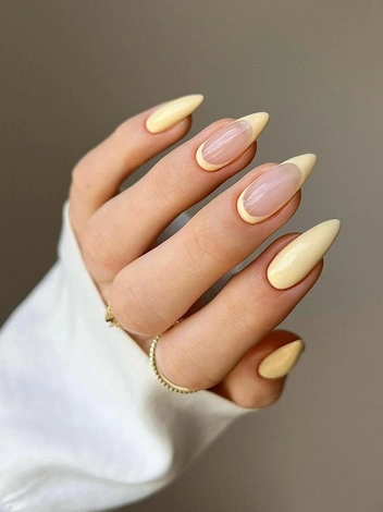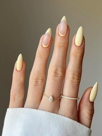 Сливочный дизайн подразумевает использование желтого оттенка в самом нежном его тоне. За счет своей мягкости и приглушенности он может быть классной альтернативой наскучившему нюду, когда хочется добавить больше красок на ногти, но при этом обойтись без чересчур ярких оттенков (читайте также: «Бэмби маникюр» — самый трендовый дизайн ногтей на весну 2025).