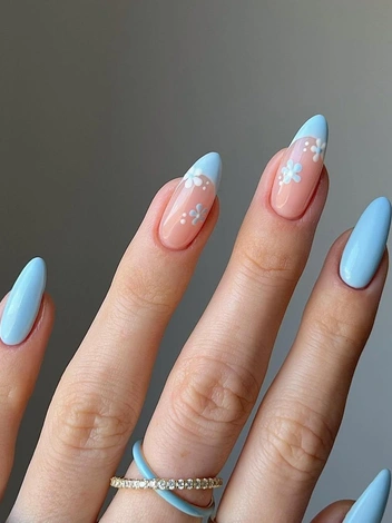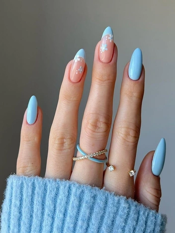 Небесно-голубой маникюр — отличный способ добавить больше свежести и легкости к любому образу, которых так не хватает после зимней «спячки».