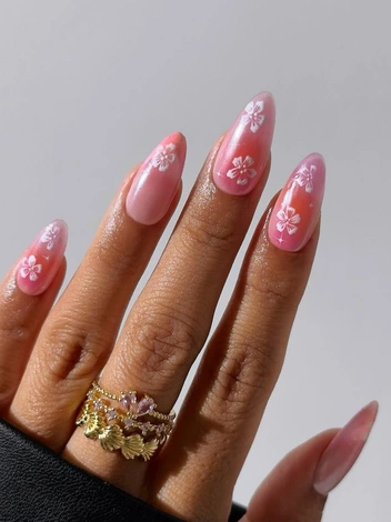 Весной точно нельзя себе отказывать в удовольствии делать цветочные дизайны, когда душе так и хочется больше тепла и нежности. Самый простой вариант создания нейл-арта — использование стемпинга. Более сложный, если позволяют навыки, — рисование кистью. И не бойтесь экспериментировать с покрытием — необязательно делать его однотонным, интересным вариантом станет градиент или аура. Такой вариант маникюра на миндальные ногти в 2025 году подойдет тем, кто не боится экспериментов и ярких акцентов в образе. Идеальный мэтч случится, если маникюр можно поддержать аксессуаром или украшениями в виде цветка.