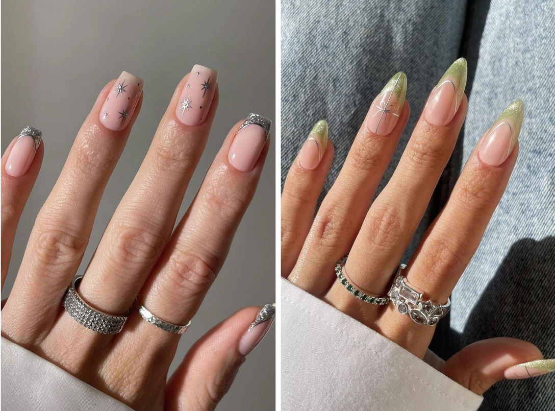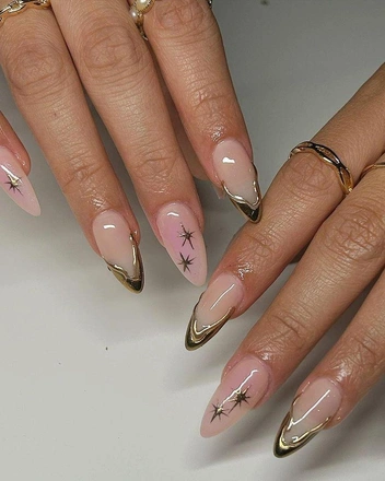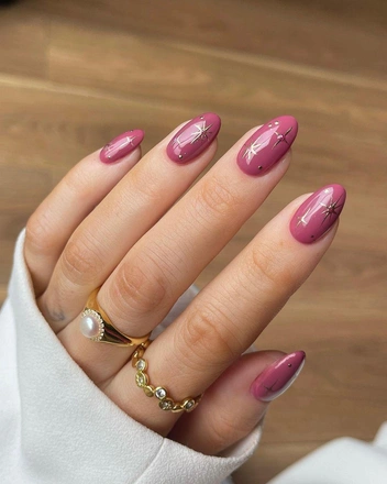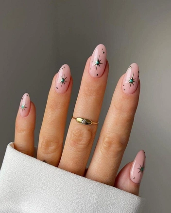 Звезды — самый простой, но изящный способ сделать однотонный маникюр более праздничным. Золотые или серебряные звезды будут гармонично сочетаться и с ярким, и с нюдовым покрытием. К рисунку также можно добавить небольшие цветные акценты в контрастных оттенках.