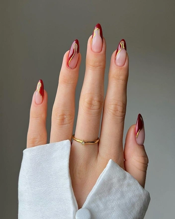 Не можем не упомянуть в подборке красный маникюр, который никогда не выходит из моды, а в преддверии Нового года становится еще более актуальным. Если однотонное покрытие вам уже надоело, попросите мастера сделать красный френч или нарисовать узоры. К дизайну можно добавить немного золотых акцентов, которые сделают маникюр еще более роскошным.