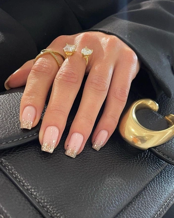 Если вы любите минималистичный маникюр, на Новый год попробуйте сделать блестящий френч. К нейл-арту можно добавить небольшие рисунки или комбинировать французский маникюр с однотонным покрытием. В качестве основы можно брать полупрозрачную базу (читайте также: Выглядит модно и дорого: 5 идей маникюра на зиму, которые вам точно нужно попробовать).