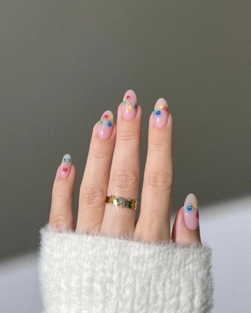 Если новогоднее настроение все никак не появляется, создать его поможет праздничный маникюр. Попросите мастера нарисовать разноцветную гирлянду и другие праздничные атрибуты — леденцы, игрушки или ель. Лучше всего сделать такой маникюр в технике negative space, чтобы не перестараться с нейл-артом и сделать его более гармоничным.