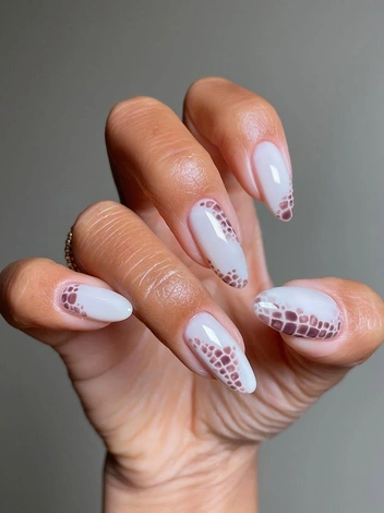 Пальму первенства среди новогодних дизайнов, конечно же, получил «змеиный» нейл-арт. Чтобы почтить Деревянную змею, с которой мы проведем весь 2025 год, обязательно попробуйте повторить такой маникюр. Помимо бесспорного преимущества в виде добродушного расположения главного животного у дизайна есть еще много плюсов: он выглядит минималистично, поэтому легко впишется в любой образ. А молочная или нюдовая основа в дальнейшем скроет отрастающую пластину.