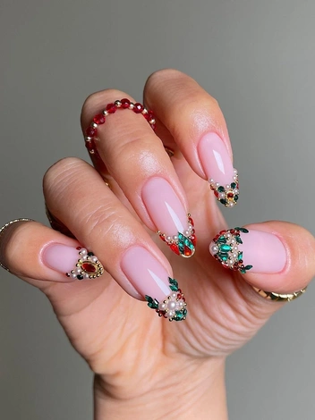 Также попробуйте разнообразить покрытие жемчужинами или разноцветными маленькими камнями, выложив их по краю ногтей или по всей ногтевой пластине.