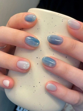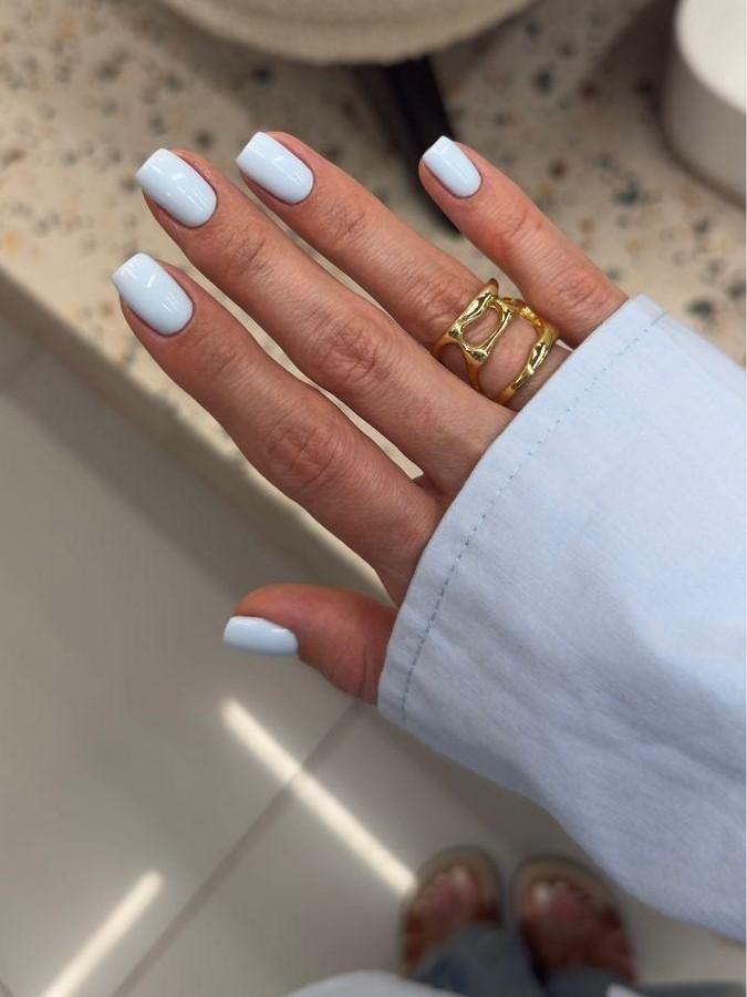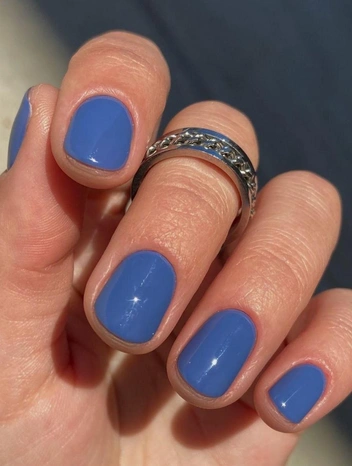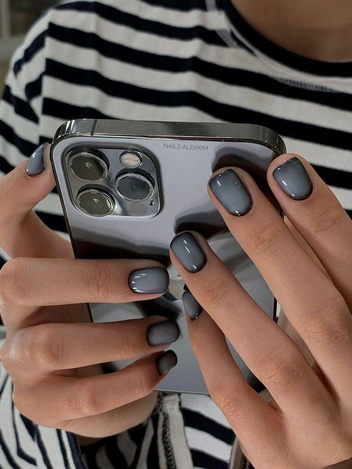 В зависимости от подтона этот цвет маникюра на 2026 может быть холодным, почти стальным, или более насыщенным, с легкой дымкой. В обоих случаях он визуально вытягивает пальцы и подчеркивает кожу. Хорошо смотрится как в глянцевом, так и в матовом варианте, особенно с серебряными украшениями или микроблеском.