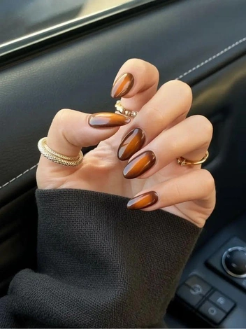 Коричневый возвращается в моду через естественность. В маникюре на 2026 год он представлен во множестве интерпретаций — от холодного какао до насыщенного шоколада. Особенно эффектно смотрятся комбинации с нюдовой базой или золотыми элементами. Такой маникюр на Новый год 2026 универсален: подходит и для работы, и для вечера.