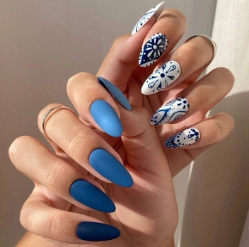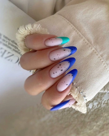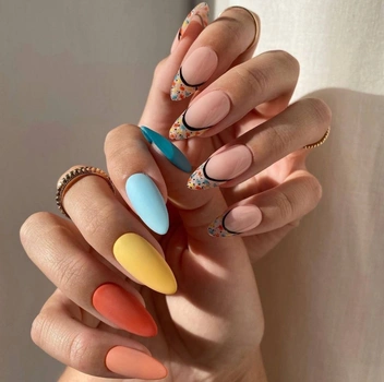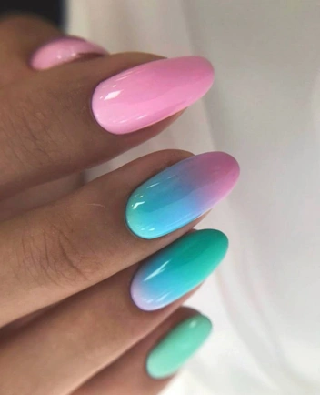 Здесь в одном дизайне ногтей сочетаются несколько оттенков одного цвета, которые можно отнести к морской теме. Например, от голубого до синего, от нежно-желтого до насыщенного, украшая каждый ноготь своим оттенком. Такой подход в оформлении — находка для любительниц однотонного маникюра и маникюра в стиле минимализм.