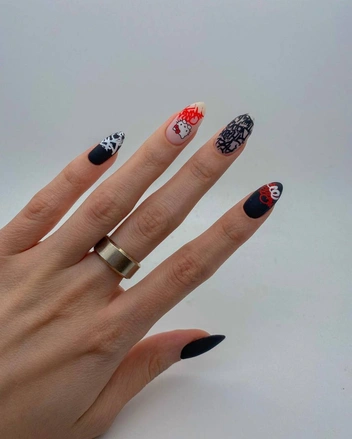 Дизайн ногтей в стиле «разные руки» — настоящий тренд 2022. В этой модной технике отлично сочетаются различные текстуры, а цветочный арт может выступить в гармоничном дуэте с однотонным покрытием. Например, на одной руке ногти матовые, спокойного приглушенного оттенка, а вот на другой внимание притягивает яркий цветочный рисунок или геометрические линии.
