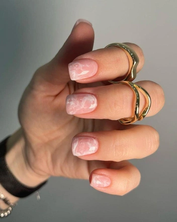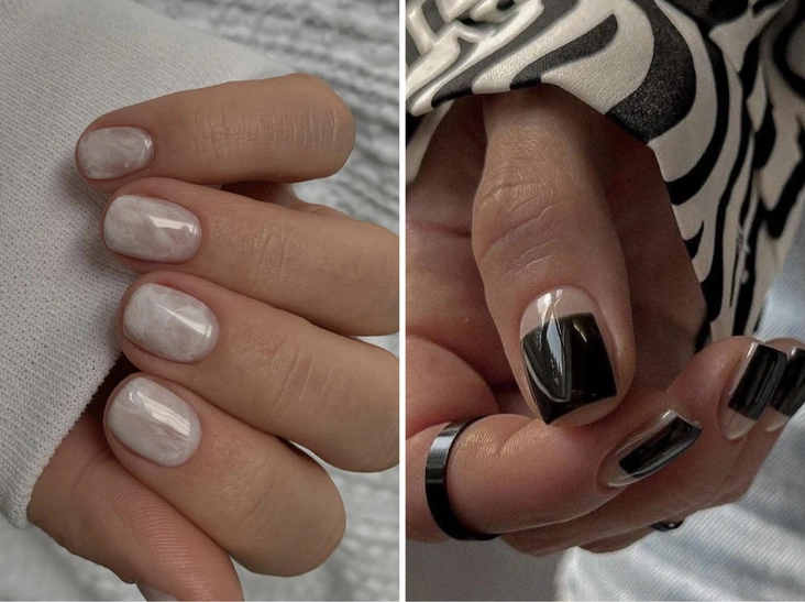 Еще одна новинка, которую точно нельзя обойти в 2023 году. Более эффектно дымные разводы смотрятся на темном покрытии. Так что любительницы черного маникюра могут ликовать и бежать в салон, чтобы разнообразить его на выпускной таким дизайном. Он будет круто смотреться как на квадратных, так и на овальных формах. Голубая дымка может напоминать морские волны, а нежная версия с использованием бежевой палитры вообще подойдет под любой наряд. Если захочется добавить каплю роскоши, то можно использовать ненавязчивые золотые акценты.