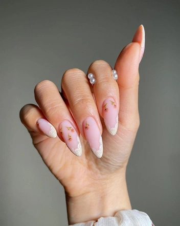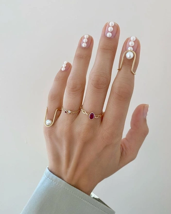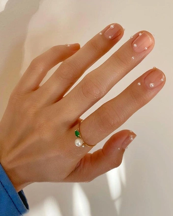 Он никогда не выходит из моды. Очень эффектно смотрится сочетание благородного жемчуга и серебристых страз. Главное — соблюдать меру и деликатность, чтобы ногти не смотрелись вычурно. Идеальное сочетание френч или прозрачный маникюр с редкой россыпью жемчуга.