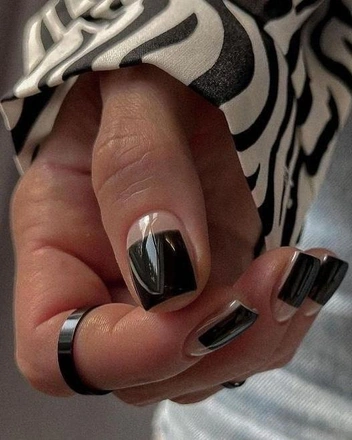 Еще один популярный тренд 2023 года. Ромбы, квадраты, треугольники, нарисованные на ногтях контрастными красками, сделают маникюр необычным. Причем узоры можно разместить на каждом ногте или украсить только несколько. Геометрия замечательно смотрится с черно-белым дизайном.