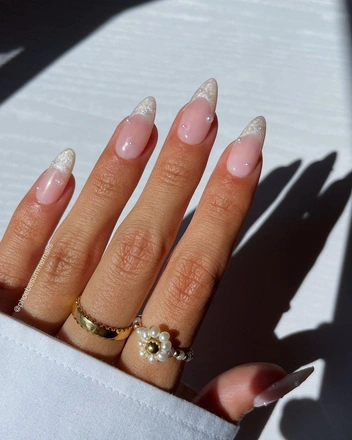 Невероятно нежный и интересный дизайн — пастельно-голубой френч. Если у вас есть желание добавить немного яркости. То можете выложить при помощи глиттера снежинку на ногтях, или же выполнить френч на безымянном пальце при помощи серебристых блесток (читайте также: Маникюр для овальных ногтей: 7 модных идей для любителей необычного дизайна).
