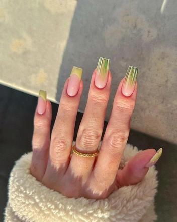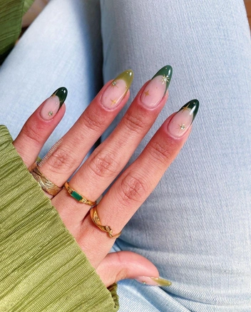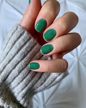 Ну, конечно же, нельзя не отдать дань зеленым оттенкам. Если у вас нет желания особо экспериментировать, выбирайте темный зеленый оттенок, а чтобы сделать из будничного яркий маникюр попросите вашего мастера перекрыть ногти топом с блестками. А если хочется чего-то более необычного, то вспомните про омбре — плавный переход из цвета в цвет. Это могут быть разные оттенки зеленого — от яркого к темному на каждом пальце. Или же на всех ногтях это могут быть два оттенка переход от темно-зеленого к черному — смотрится всегда выигрышно в любых ситуациях (читайте также: Маникюр на миллион: 6 лаков для ногтей, которые всегда выглядят дорого).
