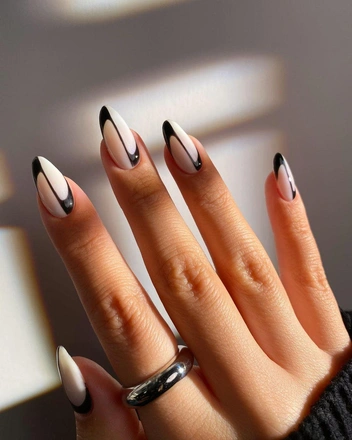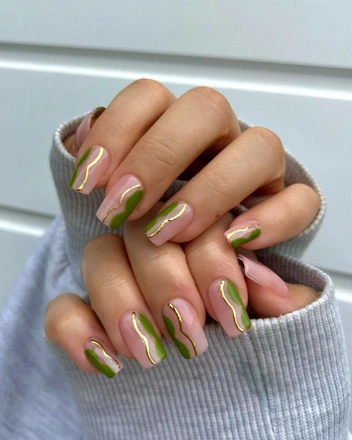 Этот на первый взгляд геометричный дизайн напоминает нам крылья бабочки. Чтобы повторить его, за основу можно взять зеленый оттенок, хорошо, если он будет перекрыт матовым топом, а поверх структурным 3D гелем ваш мастер выполнит узор, напоминающий крыло бабочки под увеличительным стеклом. Смотрится потрясающе и точно запомнится вашим друзьям и подругам.