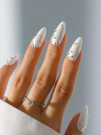 Для создания по-настоящему запоминающегося образа можно украсить ногти камнями или стразами. Это может быть как полный декор для создания сверкающих акцентов, так и отдельные камушки на одном или двух ногтях, что добавит больше блеска и роскоши (читайте также: Маникюр как искусство: самые невероятные дизайны от Наоми Ясуды — любимого мастера Мадонны и Риты Оры).