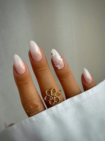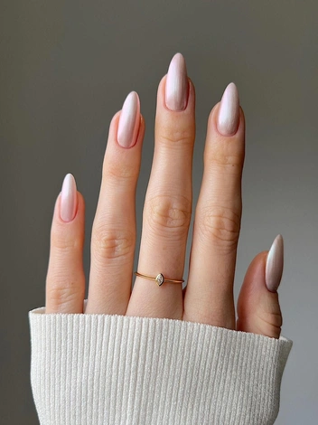 Омбре — плавный переход от одного цвета к другому — будет популярен и в 2025 году. Сочетание оттенков пастельного розового, белого и кремового создает мягкий и романтичный вид, который идеально подходит для свадьбы. Такой дизайн легко адаптируется под любой стиль и сочетается с украшениями.