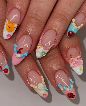 Однако на эту весну бьюти-мастера подготовили для нас еще один необычный сладкий маникюр. После череды десертов на очереди оказались «ногти-торты» — отличный выбор для тех, кто не боится максимализма в своих образах.