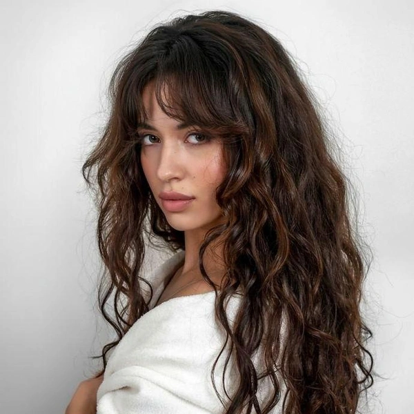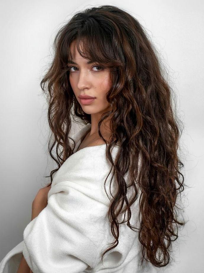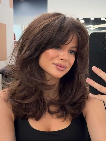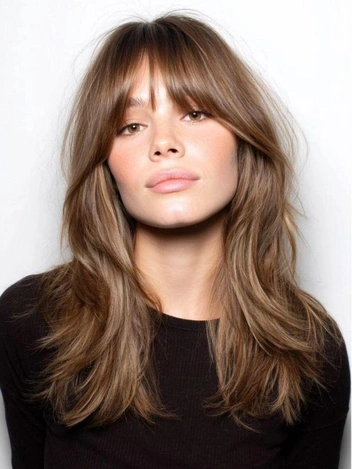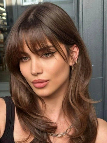 Такая стрижка с челкой 2026 подходит тем, кто хочет изменить образ без сокращения длины. Легкая асимметрия и разная плотность прядей позволяют подстроить форму под индивидуальные черты. Рваная челка смягчает резкие линии лица, делает образ более естественным и расслабленным. При этом она не требует идеальной симметрии, что делает ее удобной для повседневного ношения. В отличие от ровных вариантов, рваная челка не обязывает к постоянной коррекции — форма постепенно отрастает, сохраняя интересную текстуру. Это одно из самых гибких решений среди стрижек на 2026, которое подходит и для коротких, и для средних, и для длинных форм.