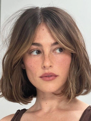 30–45 лет. Здесь акцент смещается на мягкость и естественность. Подстричь волосы лучше в формах с объемом у корней — боб, каскад, удлиненное каре, чтобы создать легкий и естественный силуэт. На фото стрижек на 2026 именно такие варианты выглядят свежо и уравновешенно. Челка или короткие пряди вокруг лица смягчают контуры и добавляют женственности.