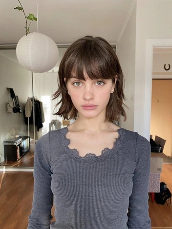 В отличие от асимметричных форм, прямая челка подчеркивает структуру волос и работает как самостоятельный элемент образа. Она добавляет собранности, не перегружая общий силуэт. Такая стрижка с челкой 2026 подходит тем, кто предпочитает лаконичность и хочет четкий акцент на глазах. Ее можно комбинировать с разной длиной: от короткого боба до более длинных каскадов. Для светлых и теплых оттенков волос прямая челка придает визуальную глубину, а на темных оттенках — подчеркивает контраст и чистоту линии.