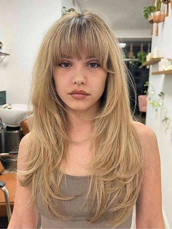 Лесенка на длинные волосы возвращается в моду с подкрученными кончиками, обрамляющими шею. Она моделирует форму лица и скрывает недостатки, придавая женственный и элегантный вид, особенно на прямых волосах.