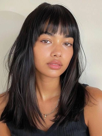 Прямая челка до бровей возвращается в моду, она подчеркивает выразительность глаз и создает строгий, но элегантный стиль. Советуем присмотреться к такой стрижке тем, у кого прямоугольная или квадратная форма лица.