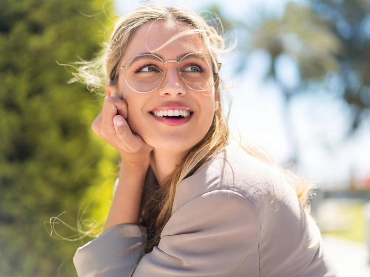 Сдержанный и едва проступающий или бойкий оранжевый — выбор за вами. Чтобы определить нужное место нанесения румян — достаточно улыбнуться, чтобы увидеть самую выступающую часть щеки. Нанесите румяна по центру на «яблочки» щек и мягкими движениями оттушуйте их в направлении виска. Важно правильно нанести румяна, чтобы их линия не «ломалась» оправой. Можно нанести их уже после того, как надели очки (читайте также: 5 трендов «розового» макияжа, которые хочется повторить).