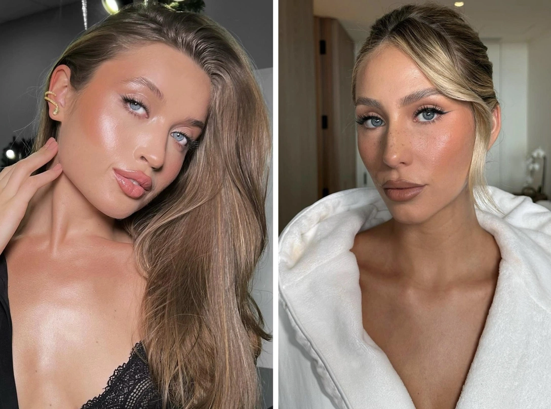 Этот тренд так или иначе дает о себе знать каждое лето. Однако в этом году, благодаря макияжу, продемонстрированному на показе Maison Margiela интерес к нему возрос в разы! Перед тем, как воссоздать его, хорошо бы трезво оценить достоинства и недостатки вашей кожи. Ведь данный макияж предполагает минимальное использование тональных средств. А значит придраться должно быть практически не к чему. Если вы уверены в ее состоянии, приступайте к выбору хайлайтера. Светоотражающие частички в нем должны быть максимально мелкими, в идеале, вообще не заметными. Чтобы проверить так ли это, нанесите средство на запястье и отведите руку подальше от себя: все, что вы должны увидеть — это гладкую, слегка влажную кожу. Причем подобный эффект можно получить используя как кремовый хайлатер, так и пудровый. Последний нужно наносить кистью, предварительно увлажненной фиксатором для макияжа или термальной водой.