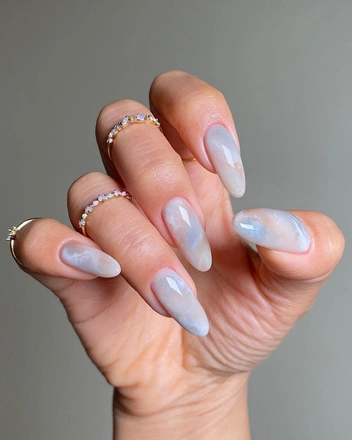 Если вы любите эстетику clean girl, этот дизайн точно придется вам по душе. Важная составляющая этого покрытия — выравнивание ногтевой пластины и ультра-глянцевый топ, с помощью которого мастер должен создать ровный блик. «Мыльные» ногти выглядят утонченно и естественно, но так, будто вы совсем не старались над маникюром (читайте также: Молочный маникюр: 7 идей, которые никогда не выйдут из моды).