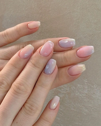 Разнообразить нюдовую палитру помогут пастельные оттенки, с помощью которых можно сделать акварельные разводы. В маникюре можно использовать нежные голубые, сиреневые, розовые, персиковые и зеленые цвета, которые гармонично сочетаются между собой (читайте также: 8 идей модного маникюра, который незаметно отрастает).