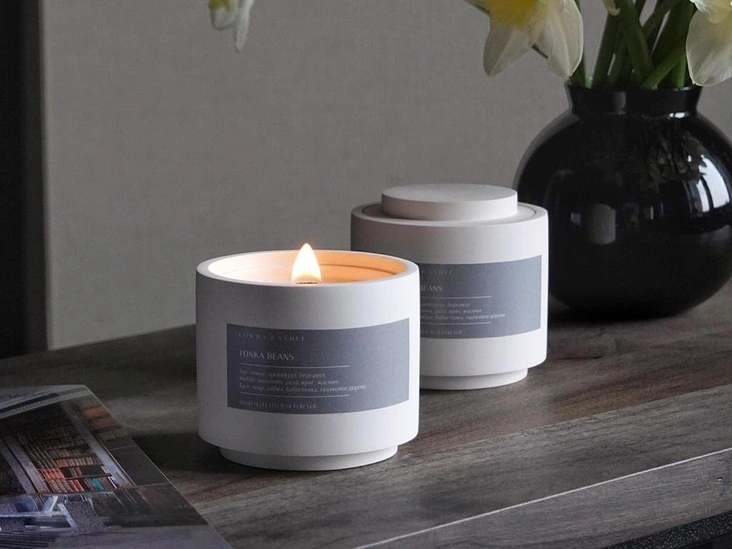 Бетон — не самый очевидный материал для ювелирных изделий, но украшения из него все же создают. Например, этим занимается сибирский бренд Beton und Glas. Для производства интерьерных свечей бетон используют чаще: отливают из него стаканы и крышечки, как у марки Forma Сandle. Материал фитиля (хлопковый или древесный), а также парфюмерную композицию — зеленую, фруктовую, тропическую, пряную — можно выбрать на сайте при оформлении заказа.