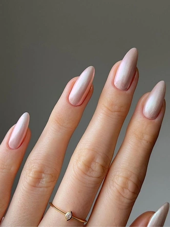 Перламутровый маникюр — это один из самых изысканных и элегантных вариантов дизайна ногтей. Он придает ногтям нежный, слегка мерцающий блеск, напоминающий переливы жемчуга. Эффект достигается за счет использования специальных лаков с перламутровыми частицами. Если лака нет, то в качестве подручного средства можно использовать мерцающие тени для глаз, которые покрываются слоем прозрачного топа.
