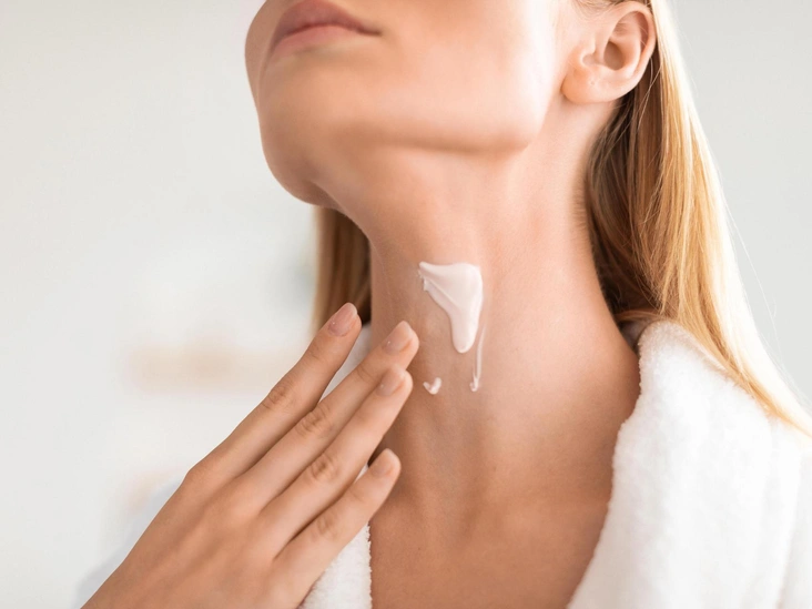 Найти свой идеальный крем — недостаточно. Помимо этого, нужно уметь правильно втирать его: мягкими движения снизу вверх, чтобы стимулировать кровообращение и способствовать лимфодренажу. Не щипайте кожу шеи и не трите ее слишком агрессивно, чтобы не спровоцировать преждевременное появление морщинок и складок.