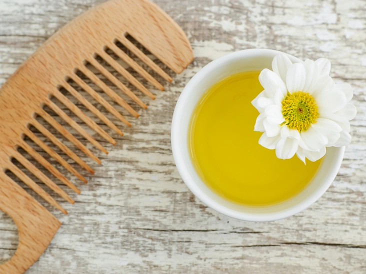 Заварите одну или несколько чашек крепкого ромашкового чая: примерно 5 пакетиков на 2 чашки воды. Для более заметного эффекта добавьте четверть стакана лимонного сока. Остудите отвар и перелейте его во флакон с распылителем. Затем нанесите средство на свежевымытые влажные пряди и равномерно распределите по волосам расческой. Подождите несколько минут и высушите локоны феном — осветляющий эффект ромашки проявляется при нагревании. Впрочем, можно оставить волосы сохнуть и естественным образом — так эффект тоже проявится, но более плавно.