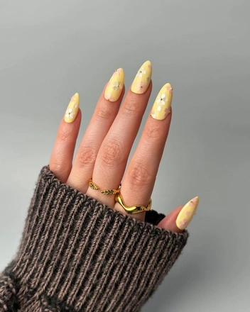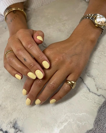 Главное же преимущество цвета yellow butter в том, что он подходит буквально ко всему. Он одинаково эффектно смотрится и на коротких квадратных ногтях, и на длинных в модной форме «миндаль». Кроме того, можно выбрать классическое однотонное покрытие с глянцевым или матовым топом, а можно использовать этот цвет в нейл-арте.