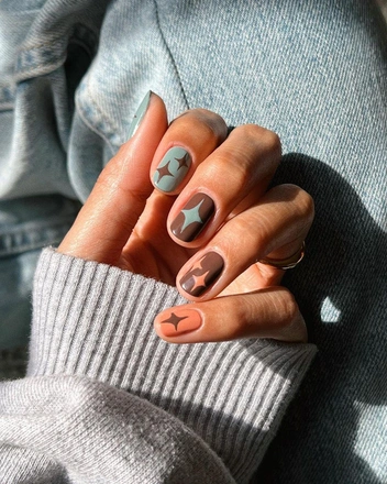 Попробуйте необычные сочетания: коричневого с голубым, розовым или оранжевым. Дизайны в этих оттенках выглядят свежо и необычно и точно соберут немало комплементов. Главное — выбирать более приглушенные и пастельные оттенки, которые лучше всего сочетаются с коричневым (читайте также: 8 идей модного маникюра, который незаметно отрастает).