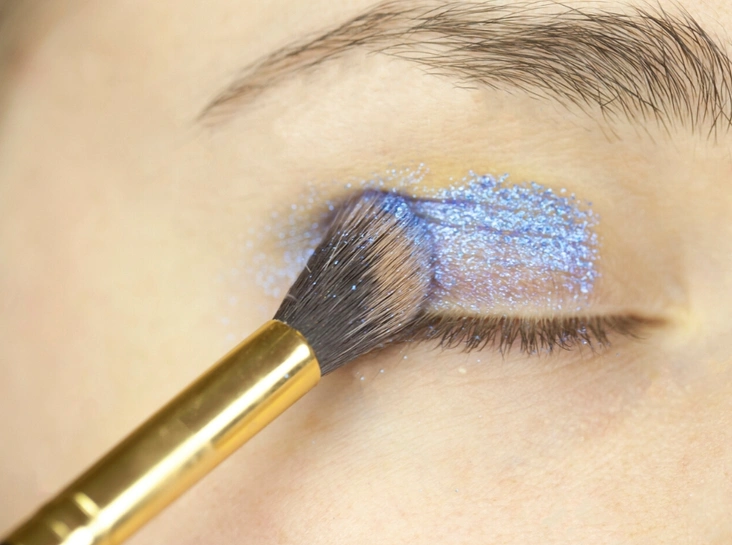 Для того, чтобы тени продержались всю ночь, необходимо из зафиксировать. В качестве «закрепителя» могут послужить тени сухой текстуры, но лучше всего использовать блестки, спарклы или глиттеры (какой же Новый год без блесток?).