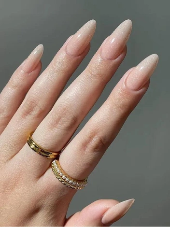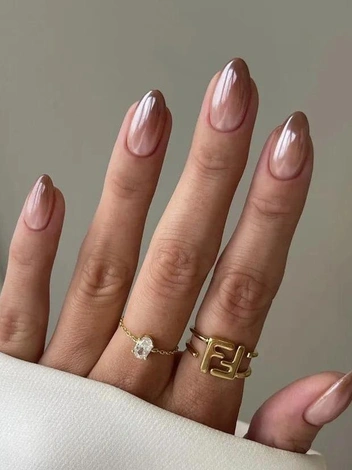 Gold Goddess Core (с англ. — эстетика греческой богини) — тренд, спустившийся к нам прямиком с Олимпа. Он предполагает использование золотых оттенков для создания различных акцентов в образах: от макияжа до маникюра. Этот эффектный, но в то же время практичный нюдовый маникюр 2025 года будет уместен в любой ситуации: на торжественном мероприятии он добавит образу больше блеска и сияния, в повседневной жизни разнообразит даже самые строгие офисные аутфиты. Для первого случая идеальным дополнением станут массивные золотые браслеты и кольца, которые усилят выразительность дизайна, для второго — тонкие цепи, которые сделают образ более утонченным.