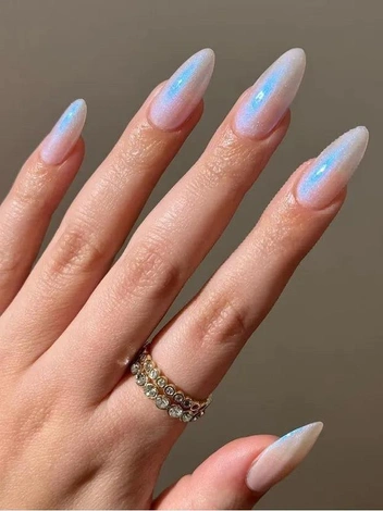 Почему вам стоит попробовать Pearl Nails? Во-первых, глянцевое покрытие со светоотражающими частицами сочетается с любой длиной и формой ногтей. Во-вторых, этот нежный маникюр с сияющим финишем создает завораживающие переливы на ногтях даже при искусственном освещении.