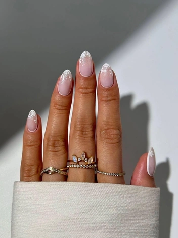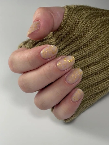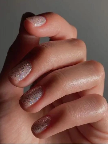 Достойная альтернатива перламутровому нейл-арту — блестящий маникюр. Тем более, именно этот вид нюдового маникюра в 2025 году чаще других просят сделать модницы в салонах нейл-арта. В отличие от Pearl Nails, сияющие вкрапления здесь более крупные, а потому дизайн становится более выразительным. Блестки можно заменить на мельчайшие кусочки золотой фольги — так маникюр станет более ярким.