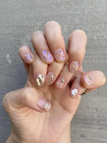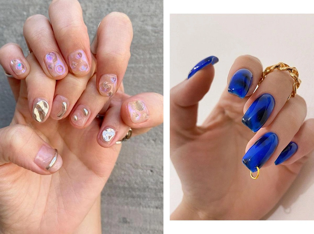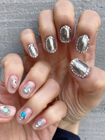 Этот тренд остался еще в 2022 году, но западные нейл-стилисты продолжают о нем иногда вспоминать. Правда, на наше усмотрение, об этом дизайне стоит забыть. Смотрится несколько вычурно, не самый практичный в носке, и уже точно устаревший, чтобы отмечать с ним Новый 2024 год. И даже не важно какого цвета будет дизайн, лучше просто оставить его в прошлом.