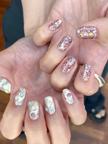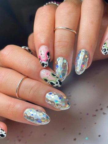 Понимаем, что Новый год — это мишура, блестки, елочные игрушки, но на ногтях не стоит такое повторять. Поэтому дизайн в стиле диско лучше оставьте на тематическую вечеринку. Излишнее количество блесток и блеска может удешевить ваш образ в целом, поэтому лучше избегать большого количества ярких деталей на ногтях (читайте также: Никто не заметит: как скрыть отросший маникюр — 6 хитростей, которые работают безотказно).