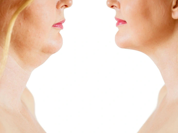 Для решения проблемы избытка жира и второго подбородка проводится липосакция – вакуумное удаление жировой ткани через небольшие проколы. После такой операции молодая кожа, как правило, получает возможность сокращаться самостоятельно, при этом вам нужно лишь соблюдать рекомендации хирурга и носить на протяжении некоторого времени специальный эластичный бандаж. Если мы говорим о проведении операции на возрастной коже, липосакцию нужно делать со SMAS-подтяжкой, так как, в отличие от молодой кожи, возрастная кожа с трудом сокращается своими силами.