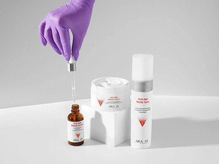 В-третьих, в составе anti-age продуктов встречаются специальные компоненты, например, ДМАЭ (диметиламиноэтанола), который улучшает микроциркуляцию и перенос кислорода к тканям, защищает клетки от старения и действия свободных радикалов, что делает его эффективным ингредиентом в борьбе с морщинами изнутри.