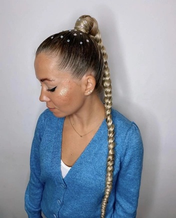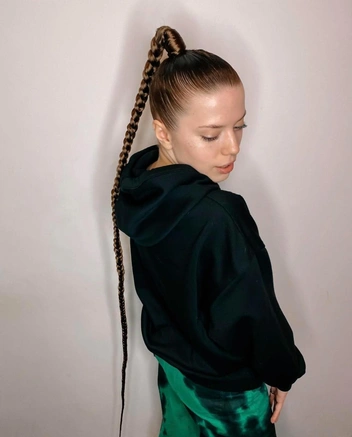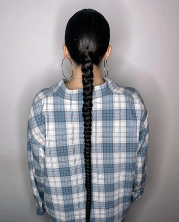 Это одна из любимых вечерних причесок у звезд. В хвост стилисты добавляют накладные пряди, чтобы коса получилась более густой и длинной, а волосы зачесывают с помощью воска или геля, чтобы избавиться от выбивающихся прядок. В повседневной жизни накладные пряди вам не потребуются. Достаточно нанести на волосы увлажняющий спрей, чтобы смягчить локоны, а затем заплести хвост в косу, закрепив кончик прозрачной резинке.