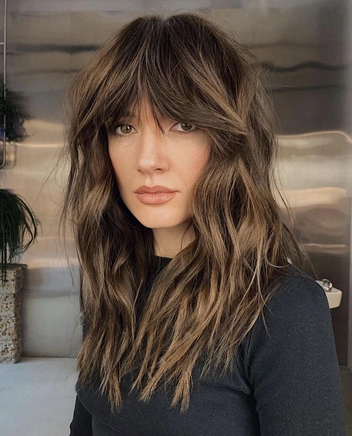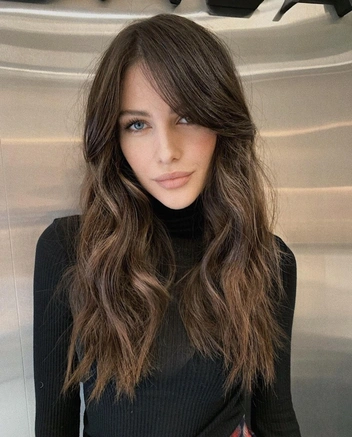 Эта техника одна из самых популярных для брюнеток. В этом окрашивании краска наносится мягкими мазками, благодаря которым получается плавный переход от корней к кончикам. Фишка балаяжа в светлых акцентах по длине, которые подчеркивают текстуру волос.