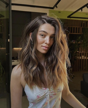 Особенность окрашивания заключается в том, что теменная зона волос остается темной, а светлые пряди добавляются таким образом, что они становятся видны только в динамике — при ходьбе, легком ветре или встряхивании головой. Техника помогает добавить немного яркости и глубины цвету волос, не изменяя его слишком сильно.