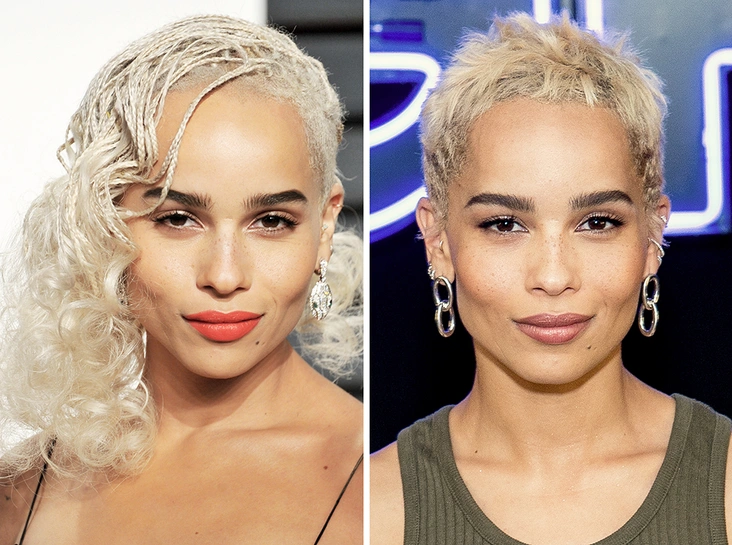 Приняв решение расстаться с африканскими косичками, Зои сделала это радикально ─ просто подстриглась под мальчика. Отличный результат не дает назвать превосходным лишь высоковатый лоб, которому, возможно, не помешала бы челка.